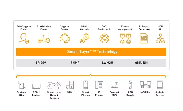 - Standard protocols – TR-069, OMA-DM, SNMP, LWM2M, MQTT and more